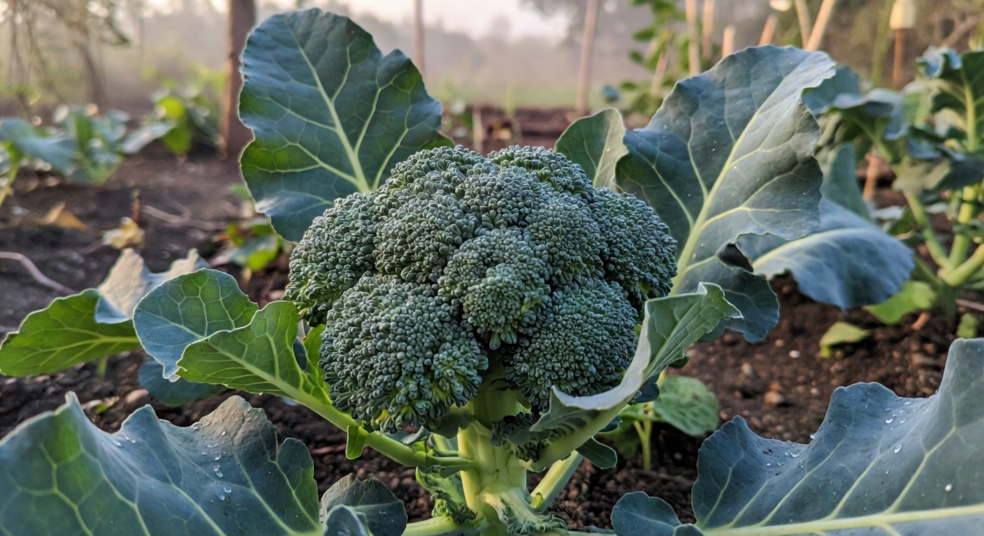 Brokuł — warzywo dietetyczne, bogate w witaminy i przeciwutleniacze. Plon 2-4 kg/m² (różyczki + boczne pędy). Sezon VI-X, 2 terminy siewu.